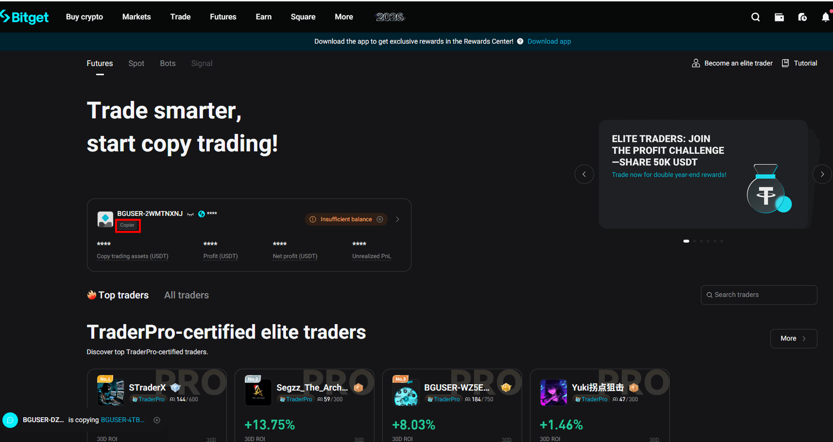 비트겟 선물 카피 트레이딩 홈화면과 팔로우 자격